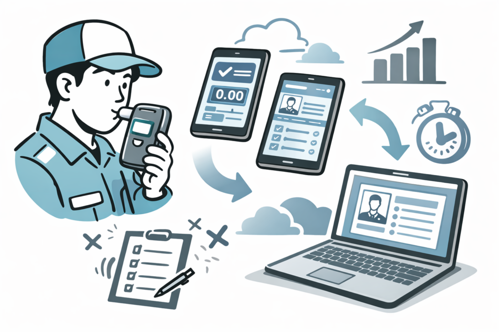 アルコールチェックの運用は、毎日続く業務だからこそ、少しの効率化が大きな時間短縮につながります。「紙と電話」のアナログ管理に限界を感じているなら、今こそシステムへの移行を検討すべきタイミングです。